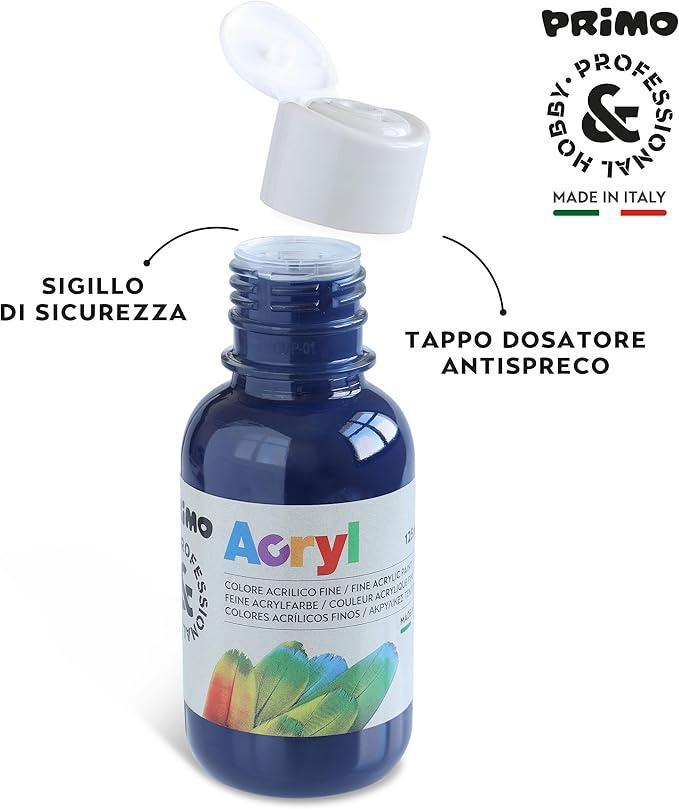 • IDEALE PER HOBBISTICA E TECNICHE DECORATIVE: L'acrilico PRIMO Hobby & Professional è perfetto per essere utilizzato in hobby creativi come il découpage o per essere applicato sulle pareti mediante stencils. Con la sua formula opaca e coprente, assicura risultati duraturi a chi cerca un colore facilmente applicabile e versatile per arricchire progetti artistici e decorativi
